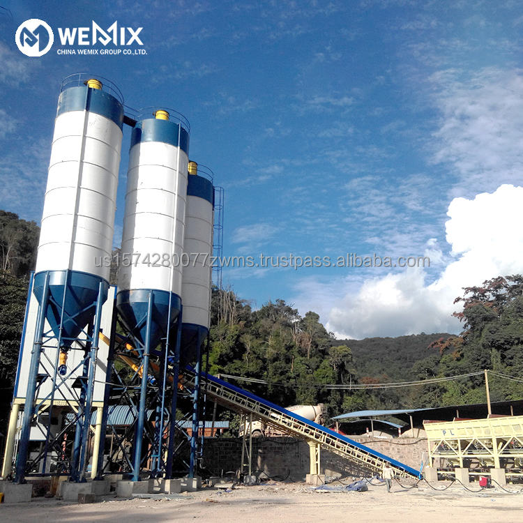 JS1500 Concrete Mixer, PLD2400 Batching Machine, Automatic control system, Belt Conveyor, Cement SiloLos componentes principales.