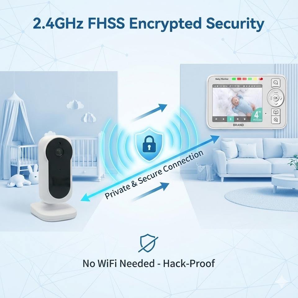 Monitor de Bebé con Video Seguro Sin Conexión WiFi, Transmisión de Largo Alcance de 390 m, Visión Nocturna y Monitoreo Privado de Bebés