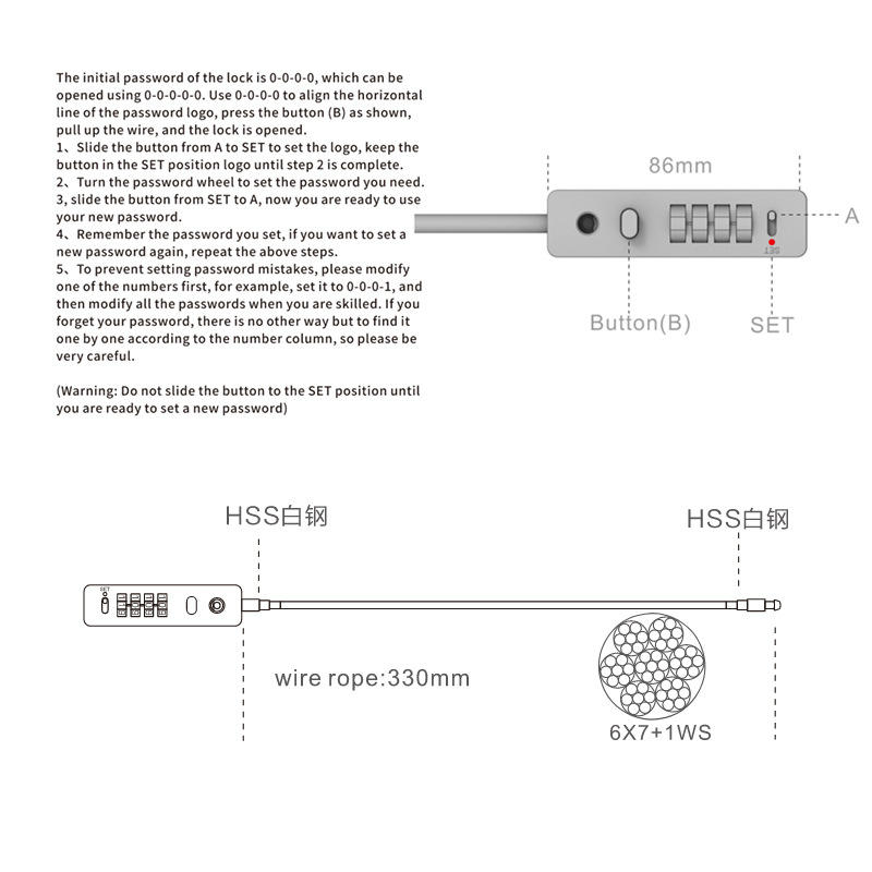 llave, Combinación de Dígitos, Combinación de Dial, Cable/Cadena