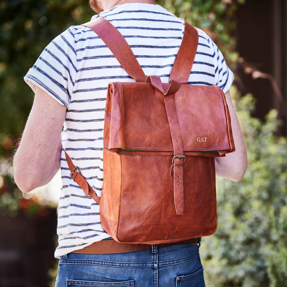 Mochila de Cuero Genuino con Cierre Enrollable