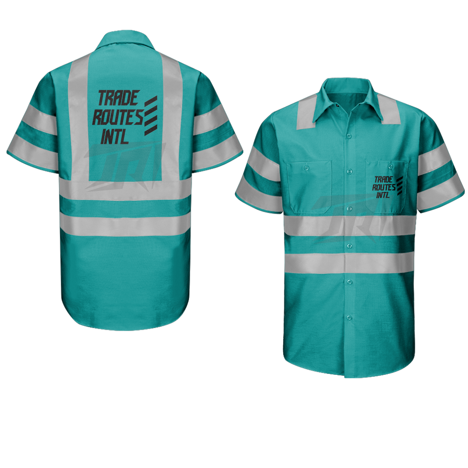 Conjunto de ropa de trabajo de seguridad general con babero de poliéster y camisa abotonada con rayas de seguridad reflectantes para uso industrial