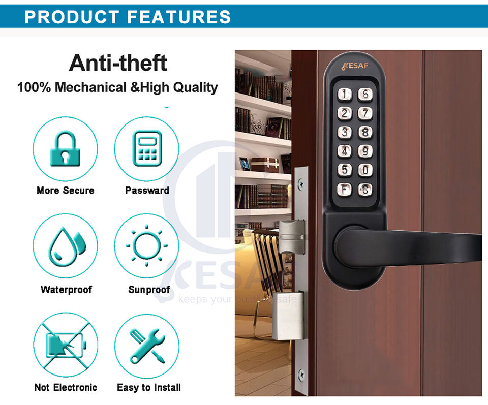 Seguridad Código de llave inútil Contraseña mecánica Cerradura de puerta Manija de combinación Botón pulsador digital Cerradura de puerta de aleación de zinc