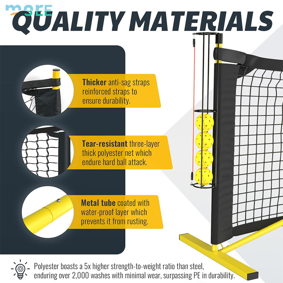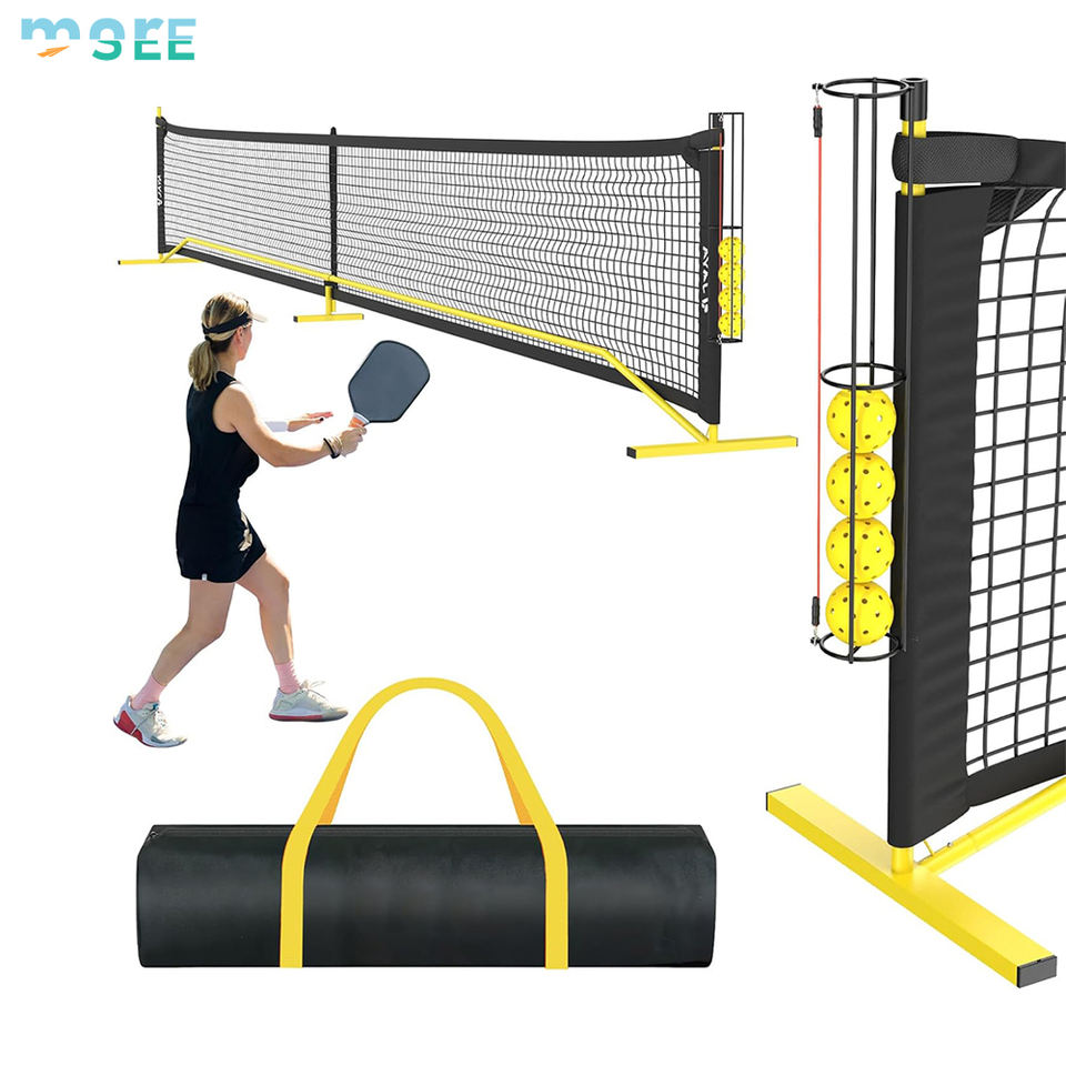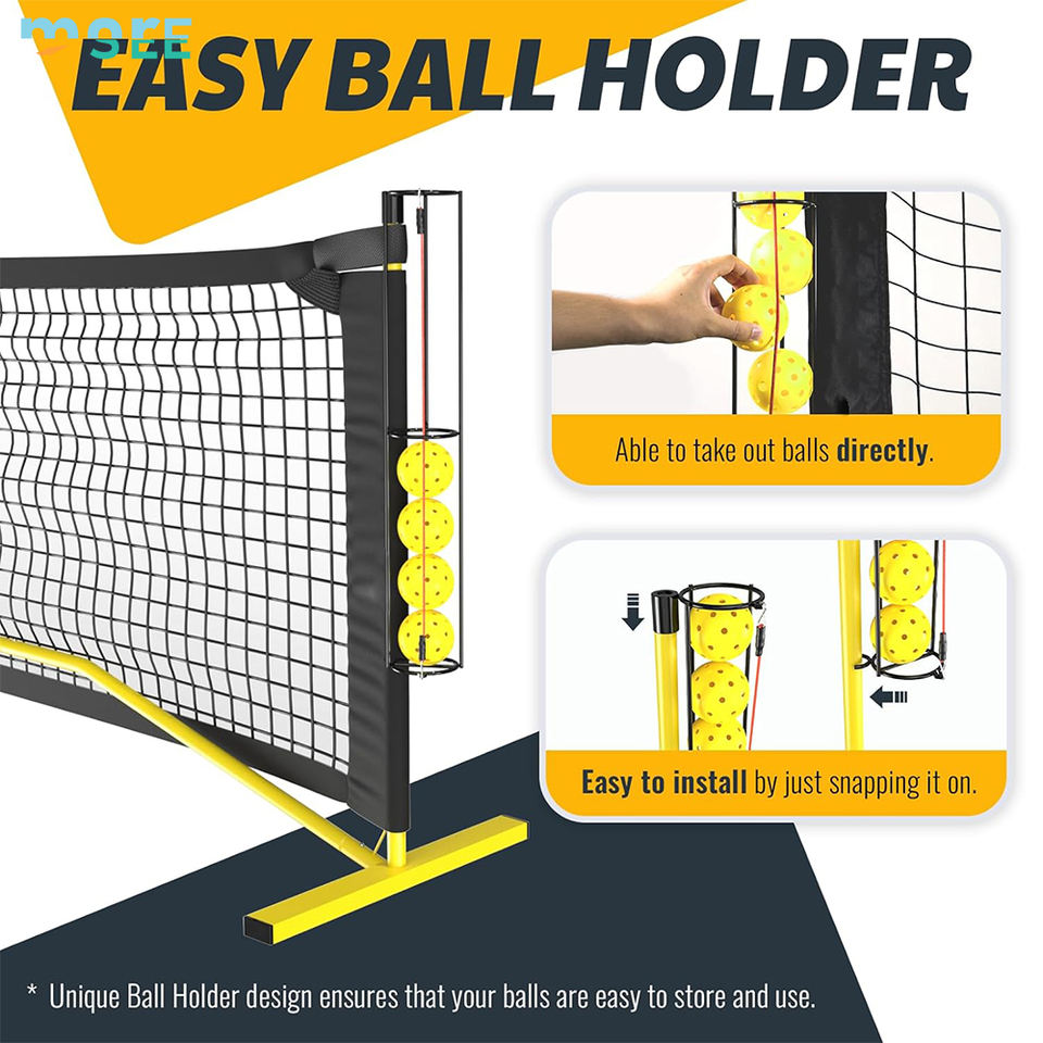 Red de Pickleball SeeMore de 22 pies, tamaño regulamentario USAPA, con marco metálico para patios traseros, soporte para pelotas de pickleball y bolsa de transporte resistente.