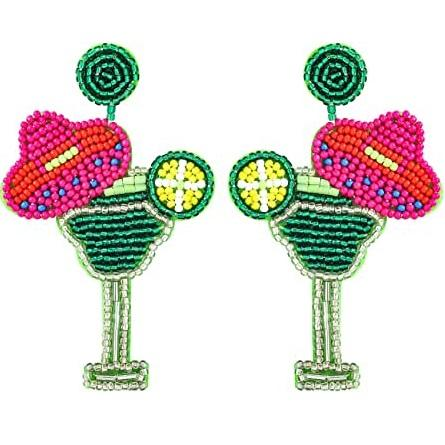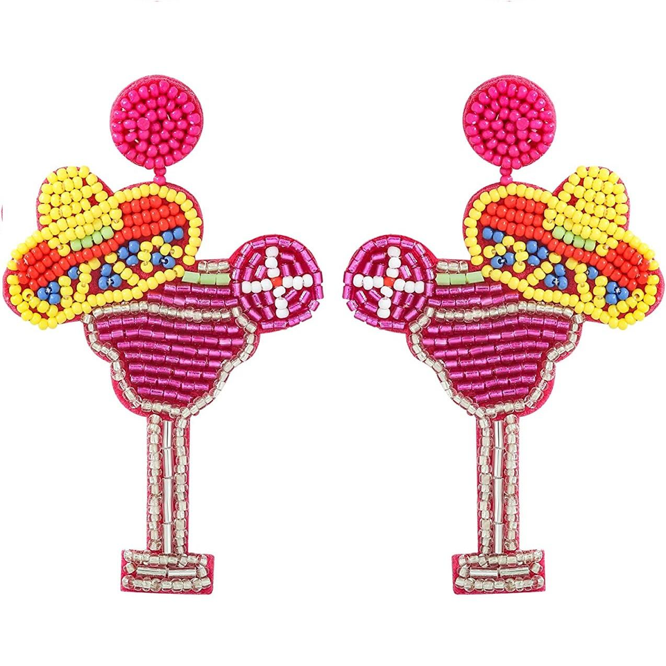 Pendientes de cuentas de semillas Pendientes hechos a mano bordados con forma de gota multicolor de la India Joyería de moda para mujeres y niñas