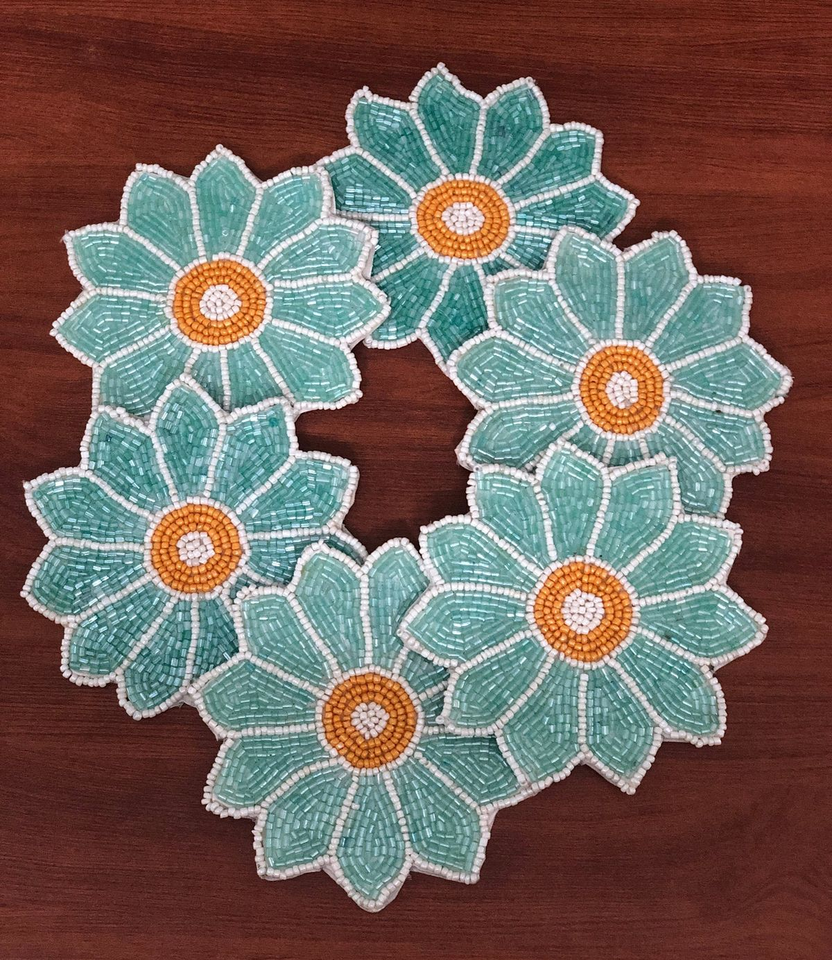 Posavasos bordado con cuentas de semillas con diseños personalizados, posavasos bordado con cuentas de semillas de lujo para decoración del hogar