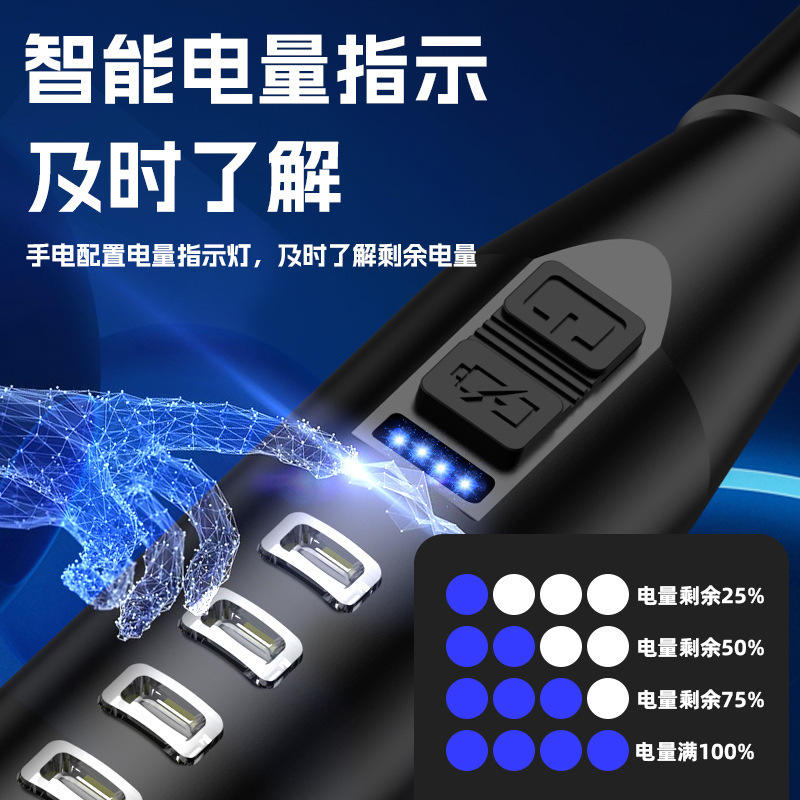 Linterna de Defensa Personal Multifuncional de Alta Intensidad, Recargable por USB, Luz de Seguridad para Patrullaje en Exteriores, Material ABS Negro