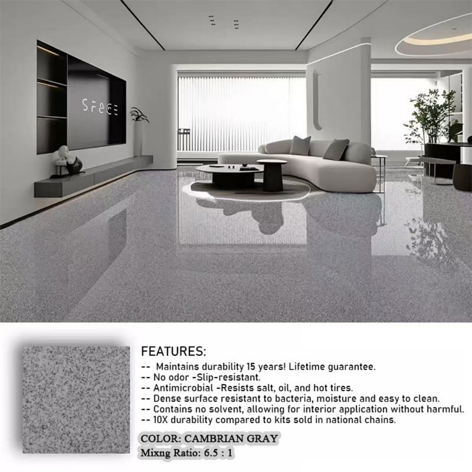 Pintura Epóxica Autonivelante para Pisos con Efecto Mármol, Precio de Fábrica, Baja en Emissiones, No Tóxica, Lisa y Antideslizante