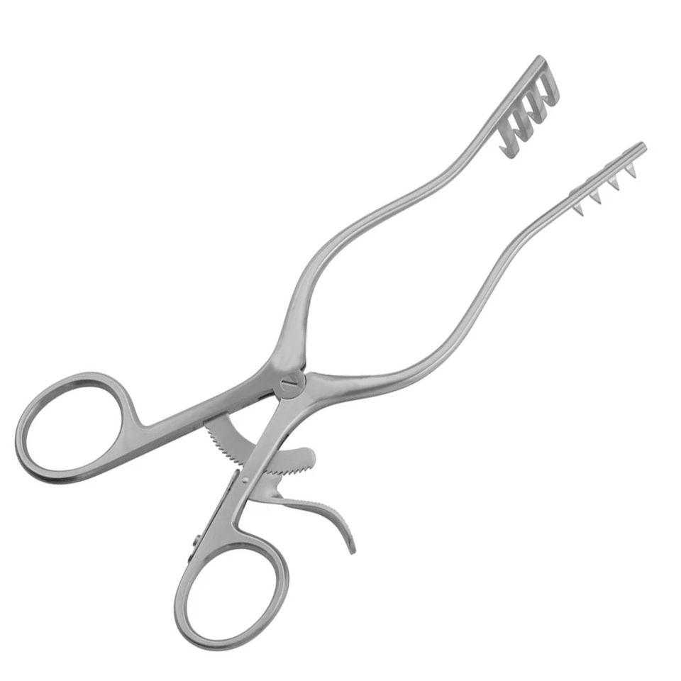 Retractor Quirúrgico Autoajustable 4x4 con Dientes Afilados de 19 cm, Instrumento de Acero Inoxidable para Cirugía General y Procedimientos Ortopédicos