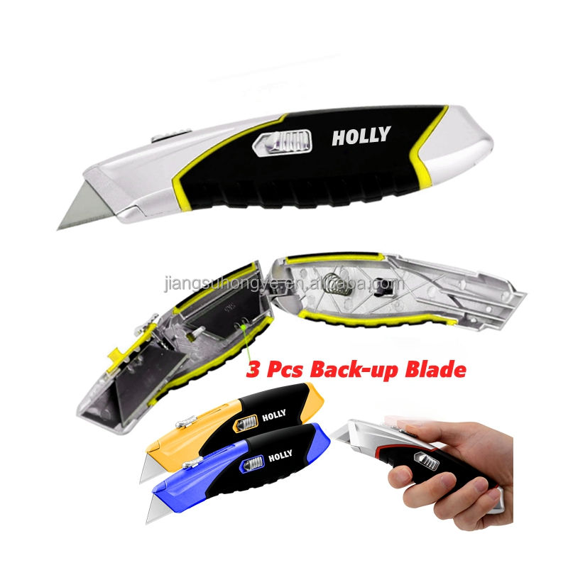 Cuchillo retráctil automático con caja de aleación, antideslizante, seguro, con mango de goma de zinc, cuchilla de seguridad retráctil automática, cuchilla multiusos.