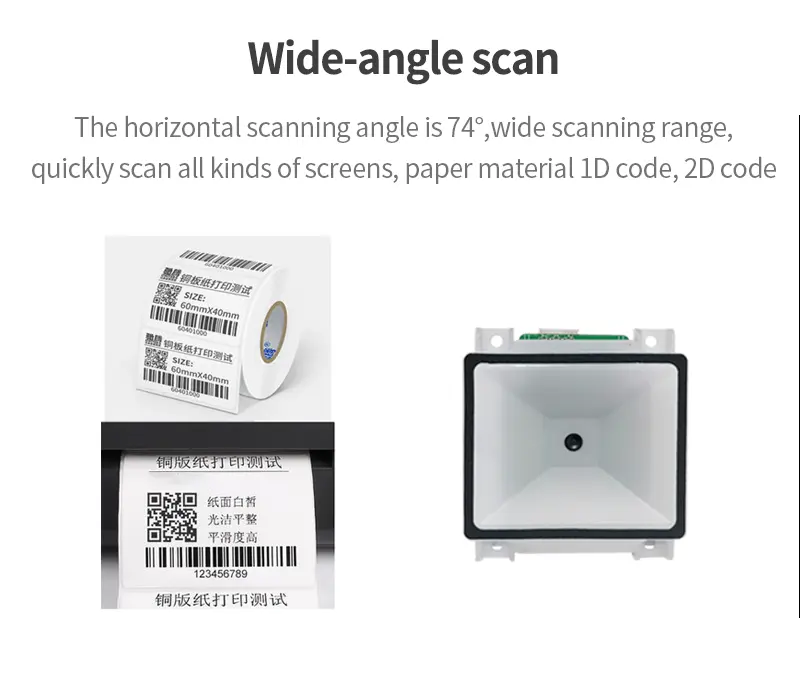 Escáner de pago de máquina expendedora de autoservicio, instalación fija, lector de código Qr, módulo de escaneo de código de barras 1D 2D