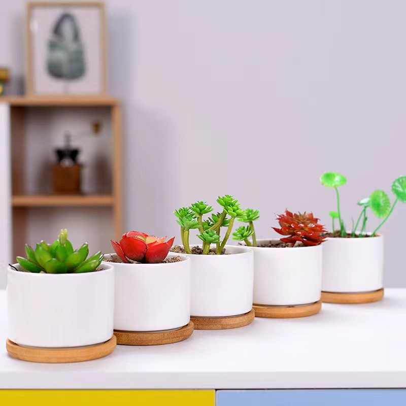 Maceta de autorriego Almacenamiento automático de absorción de agua Maceta suculenta redonda de doble capa Maceta pequeña para plantas verdes