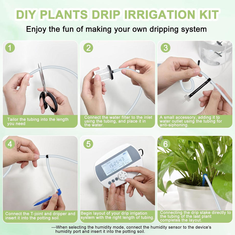 Kit de Sistema de Riego Automático con Temporizador Digital Programable, Riego por Goteo Automático, Admite de 10 a 15 Macetas para el Cuidado de Jardines Interiores
