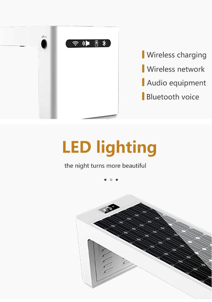 Autosuficiente alimentado exclusivamente por energía solar Banco de jardín de carga de teléfono con enchufe USB