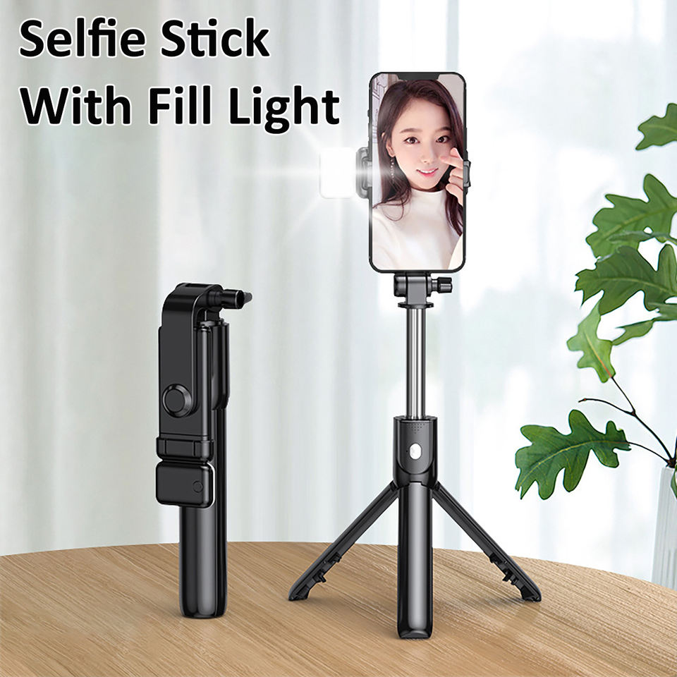 Selfie Stick extensible con control remoto de luz LED autoalimentada, trípode de mesa