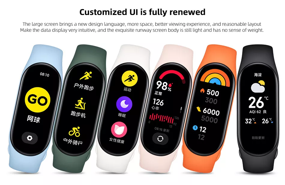 Venta más inteligente rastreador de ejercicios monitor del ritmo cardíaco de múltiples deporte estilo Pantalla AMOLED de oxígeno en la sangre mi banda 7 Versión global
