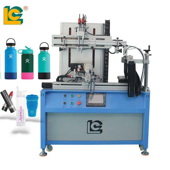 Impresora de pantalla de botella semiautomática con curado LED UV Impresión multicolor para botellas redondas/tazas Controlado por PLC