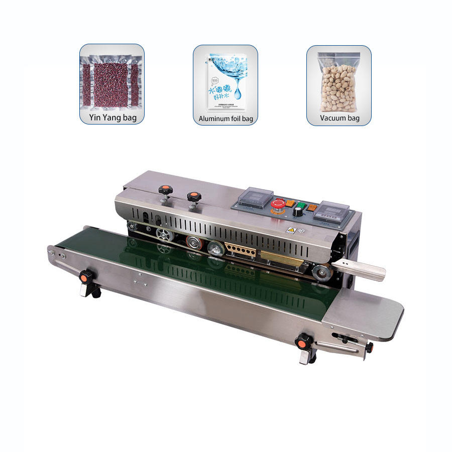 Máquina de Sellado Continuo Semiautomática, Impresora de Inyección de Tinta para Envasado de Bebidas, Sellado Térmico de Bolsas de Papel, Películas y Bolsas con Rodamientos
