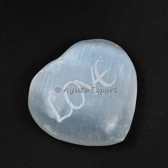 Artesanía de piedra semipreciosa, palabra grabada amor en selenita