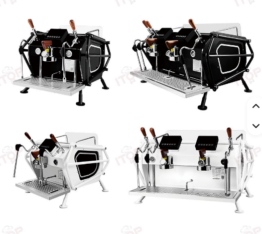 Máquina de Espresso Semiautomática Comercial de Doble Cabezal con Bomba de Presión para Cafetería con Espumador de Leche