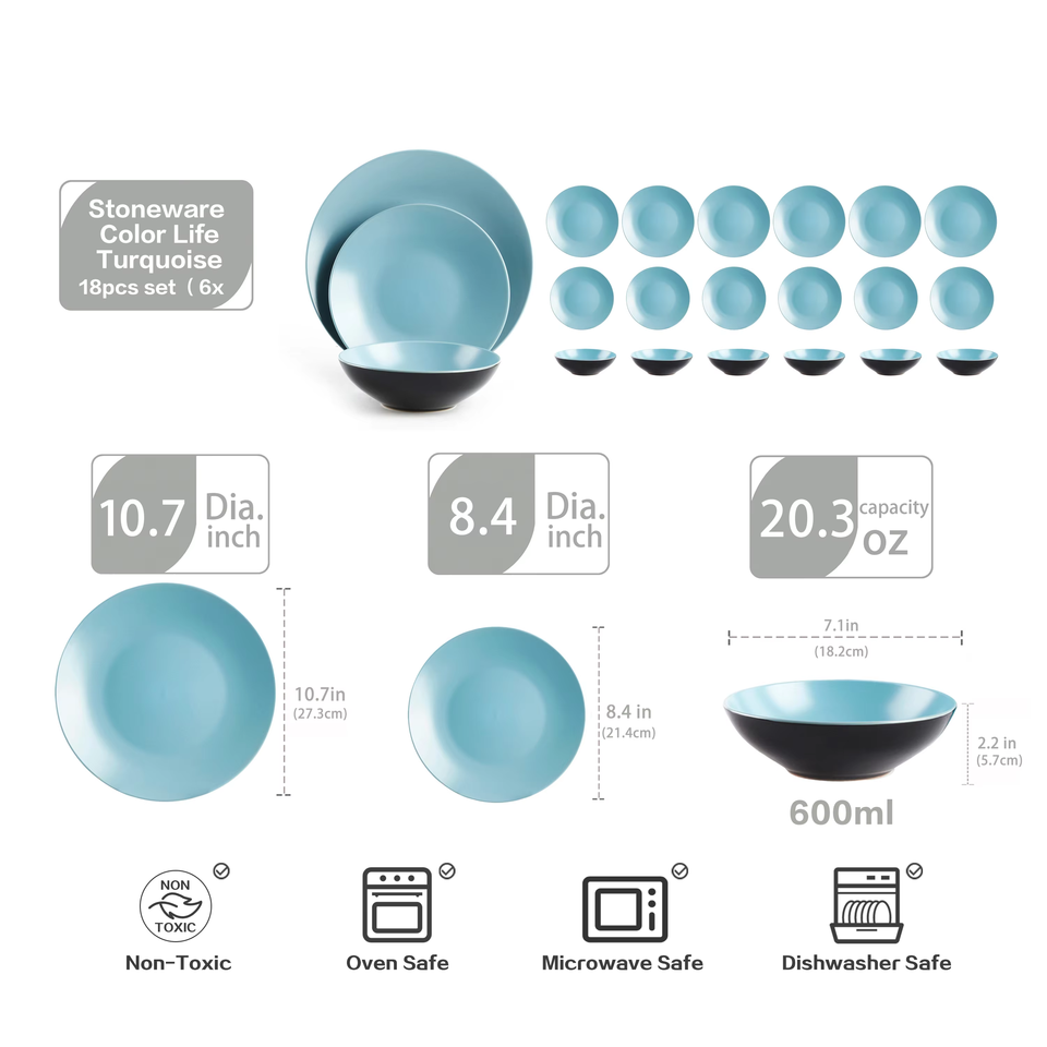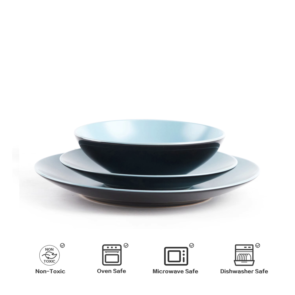 Promoción de Septiembre: Juego de Platos y Tazones Redondos para Cocina, Vajilla de Cerámica Fácil de Limpiar, Juego de Vajilla de Gres Antiadherente para Regalo
