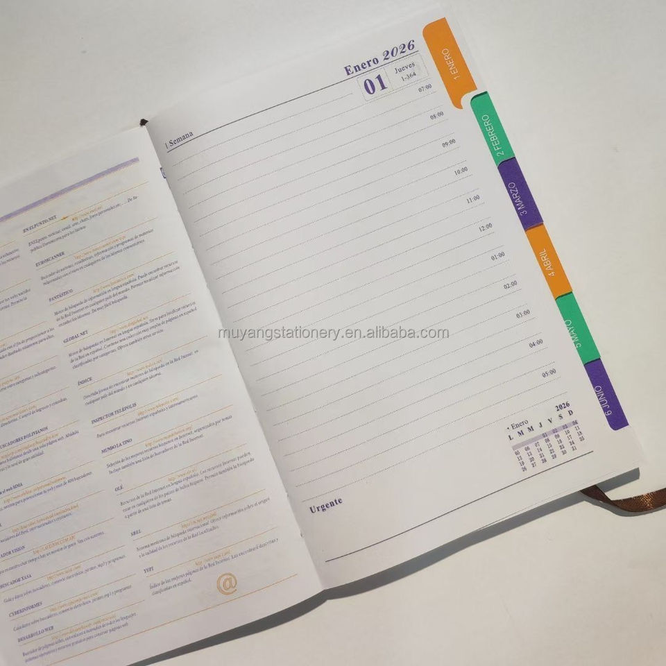 Envíe sus archivos de diseño gráfico, bolígrafos personalizados, diario de cuero con tapa dura tamaño A4, agenda 2026 con una página por día, planificador con pestañas mensuales