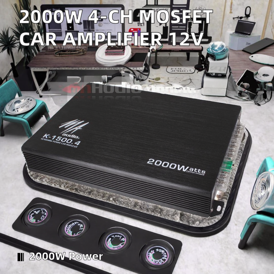 Amplificador de Audio para Automóvil Senon de 2000 Vatios Clase AB de 4 Canales y 12 V con Crossovers y Procesador de Sonido MOSFET