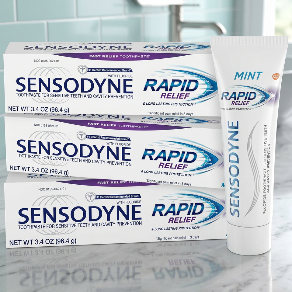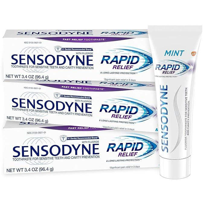 Pasta Dental Sensodyne Alivio Rápido para Dientes Sensibles con Menta y Flúor, Protección Duradera para Adultos