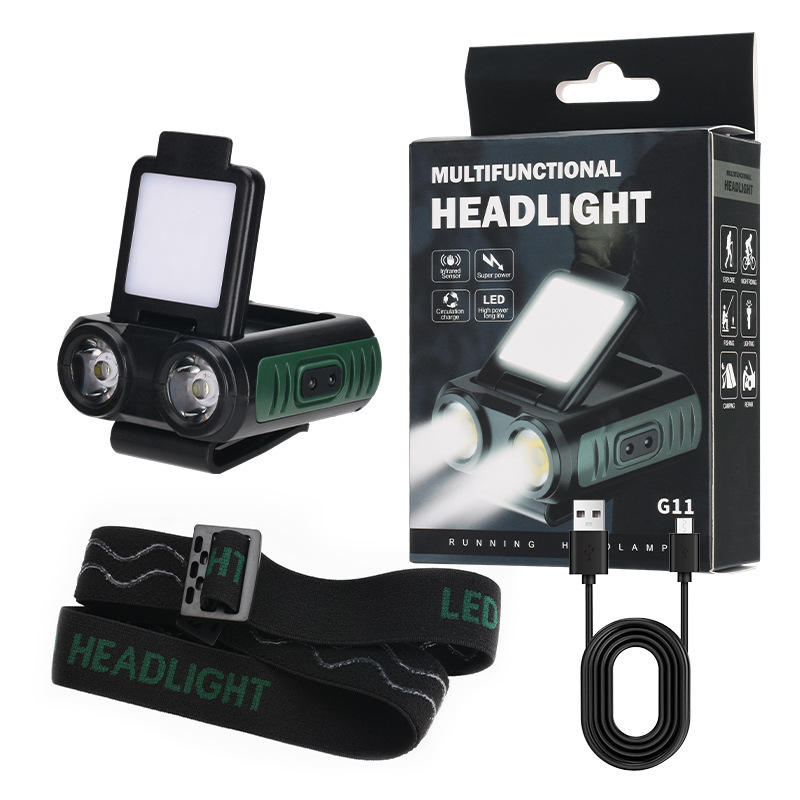 Linterna frontal LED COB con sensor, luz con clip para gorra, linterna frontal recargable por USB, linterna frontal con batería integrada, linterna frontal LED para pesca y camping