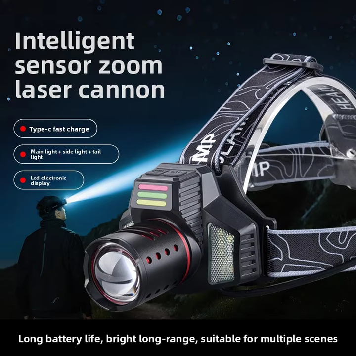 Faros LED con sensor, luces traseras, para exteriores, montados en la cabeza, para acampar, recargables por USB, IP44, impermeables, con sensor de movimiento, superbrillantes