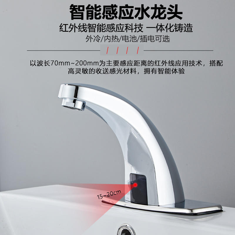 Grifo de Lavabo con Sensor, Monomando, Sin Contacto, Montaje en Cubierta, Estilo Minimalista, Válvula de Cerámica