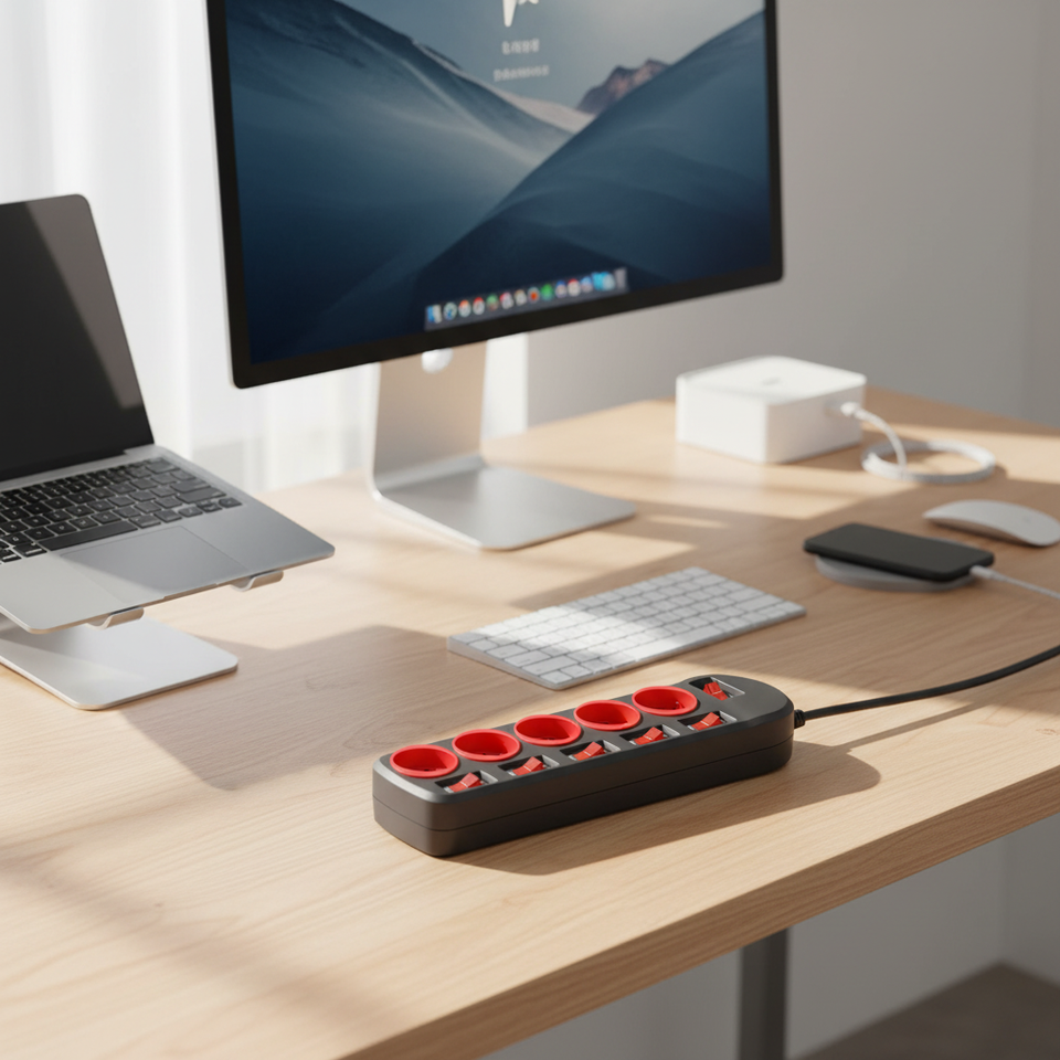 Regleta de Enchufes de 5 Tomas con Interruptor Independiente, Control Maestro-Esclavo, Tipo Europeo