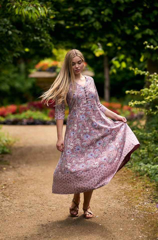 Vestido Boho Floral Serena Azul Lila Moda Ética