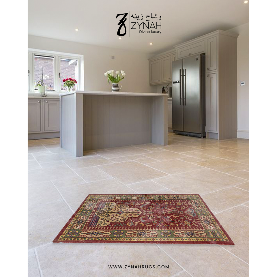Alfombra de Oración Serenity Bloom con Estampado Floral, 27x45, Hecha a Máquina, de Viscosa, Seda, Poliéster y Cáñamo, Acolchada y Lavable
