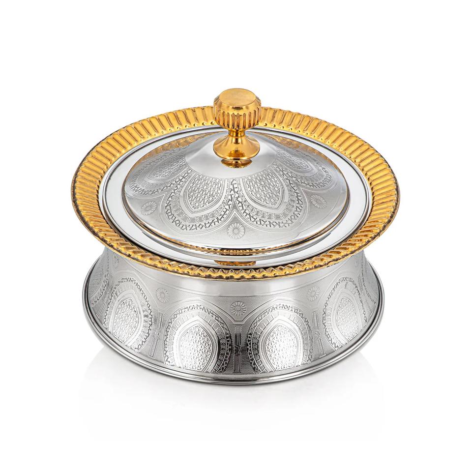Olla para servir, cubierta de acero inoxidable, diseño martillado, olla de doble pared pulida brillante, forma redonda, mesa de comedor, olla para servir, gran oferta