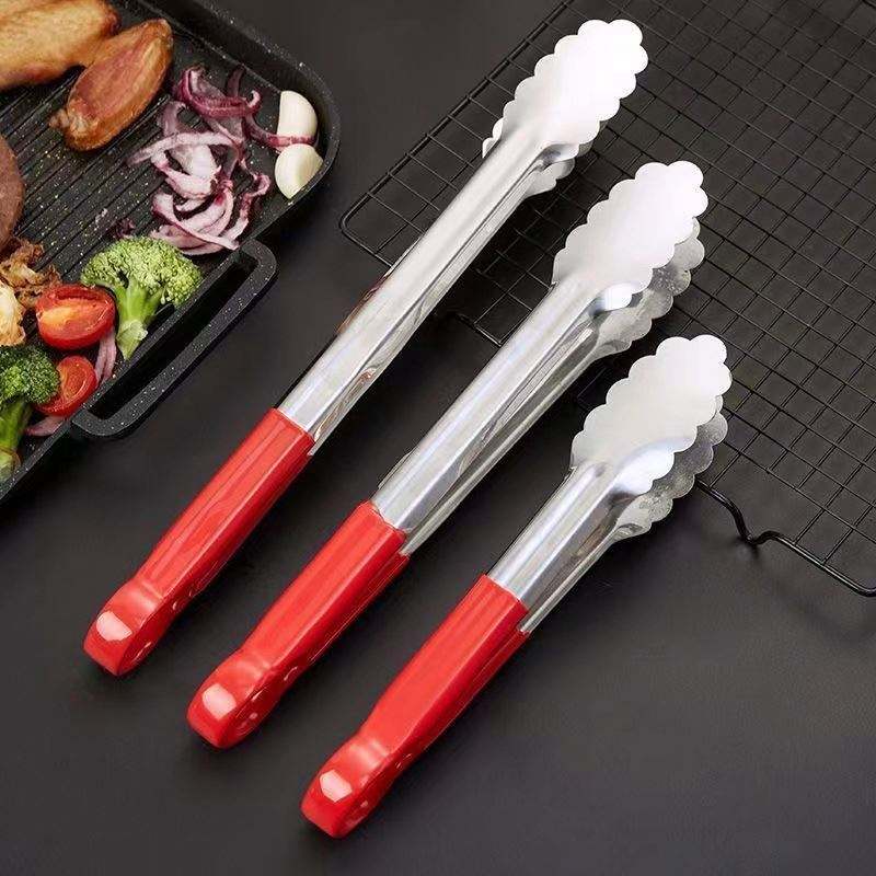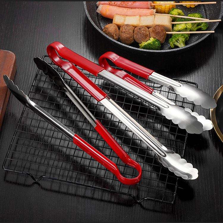 Pinzas para Servir de 9/12/14 Pulgadas, Utensilios para Barbacoa con Mango Recubierto, Pinzas para Cocina, Pinzas para Servir Filetes de Acero Inoxidable con Diseño Festoneado
