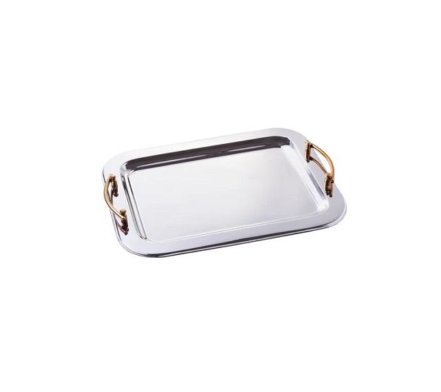 Bandeja de servicio de fábrica al por mayor bandeja de servicio rectangular decorativa de lujo comida de boda fruta hierro y bandeja de servicio de madera