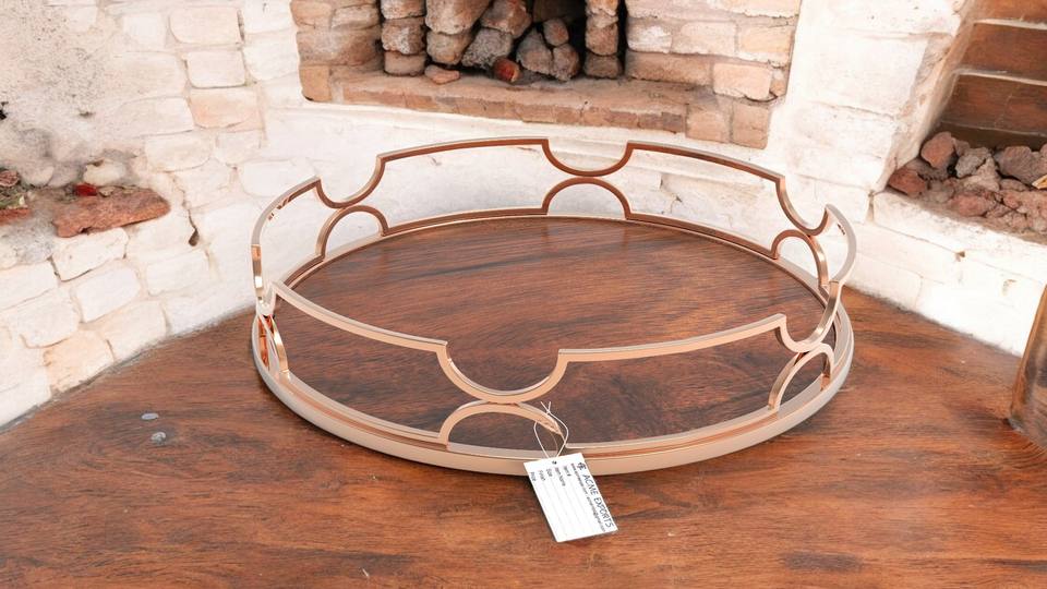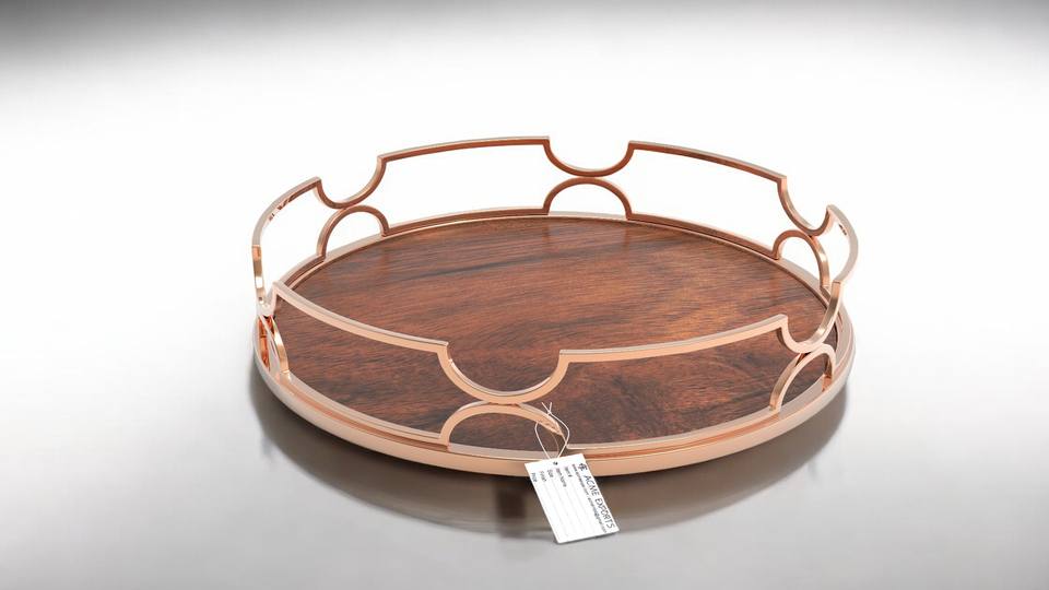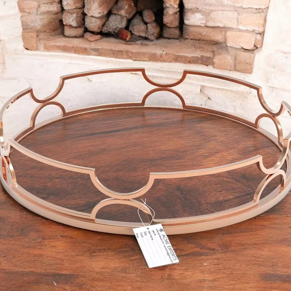 Bandeja de servicio para cocina ecológica, equipo de servicio de catering, bandejas de servicio chapadas en oro rosa de madera y Metal a la venta