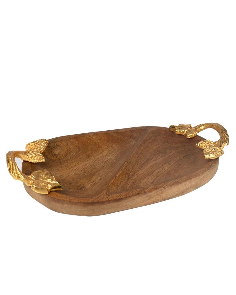 Bandeja para servir en madera pura Color marrón Perfecta para uso de vajilla de hotel y restaurante Hecho EN LA India Asas de diseñador hechas a mano
