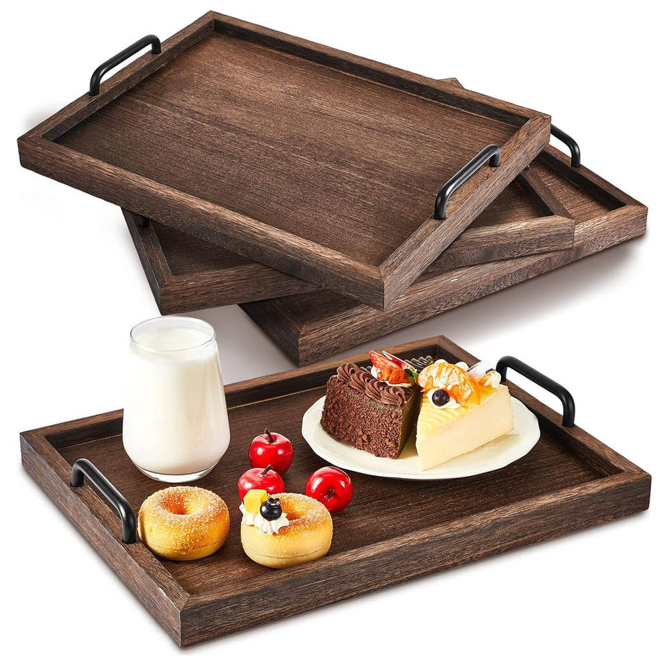 Bandeja DE SERVICIO DE rectángulo de madera con mango L Juego de 4