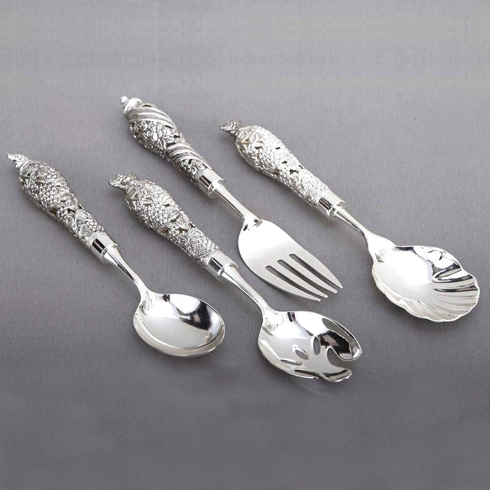 Juego de utensilios de servicio con mango en relieve de aluminio, conjunto de utensilios de acero inoxidable para bar y ensalada