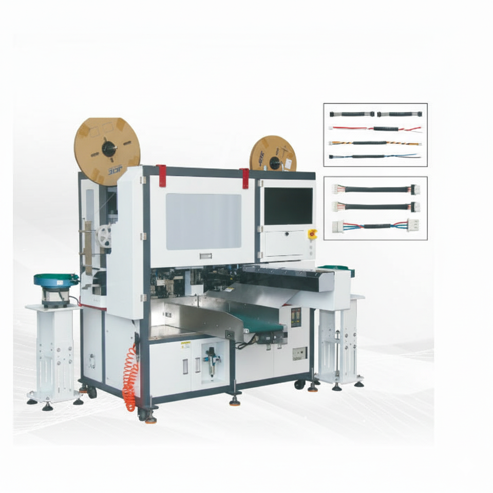 Máquina de inserción de conectores y crimpadora de doble cabezal automática servocontrolada con trenzado opcional