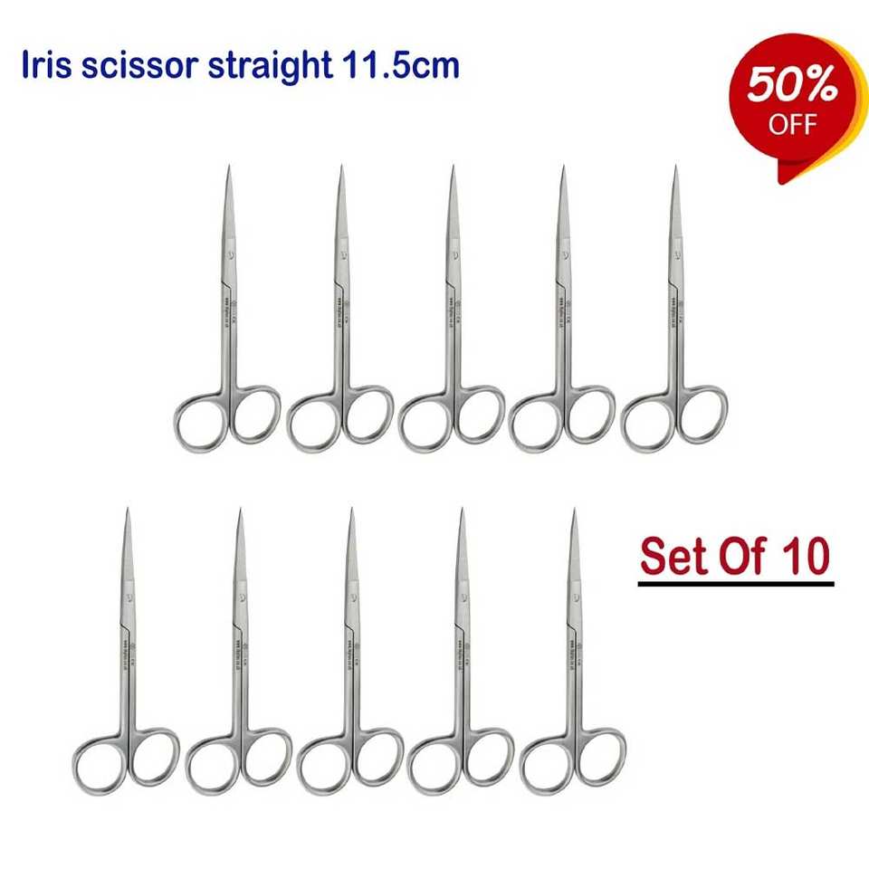 Juego de 10 tijeras médicas manuales para recortar Tejidos quirúrgicos, rectas, de acero inoxidable de 115cm, esterilizables en autoclave, reutilizables, para quirófano