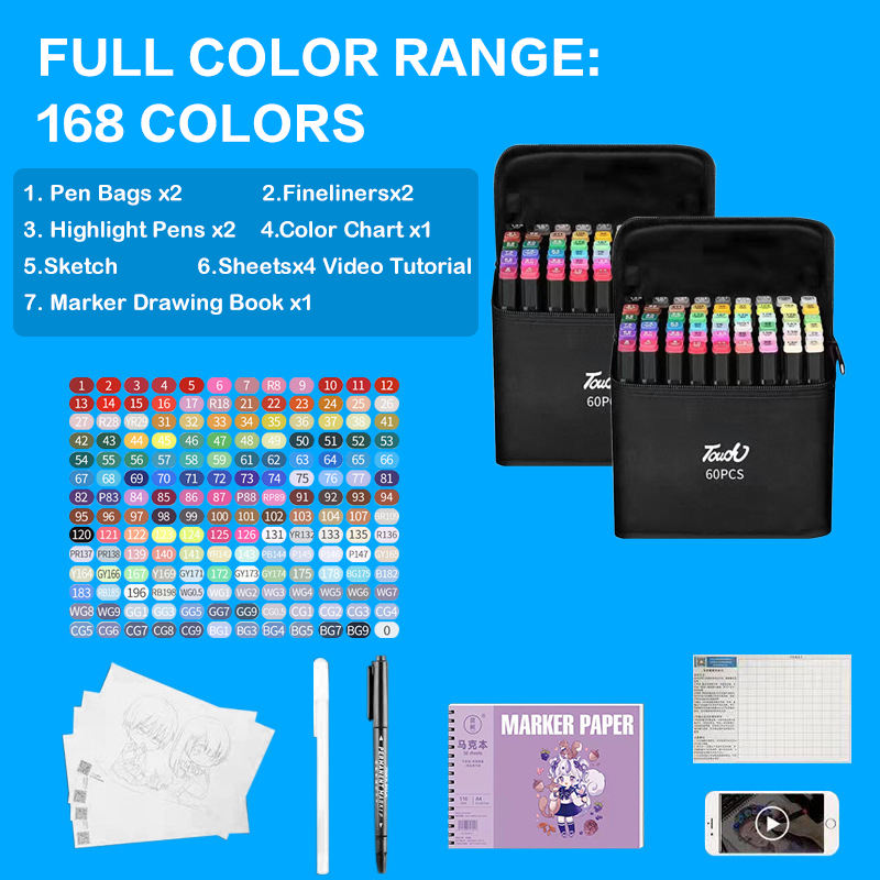Nombre de los productos:48 /80/168 colores, rotulador de arte permanente a base de alcohol con doble punta.