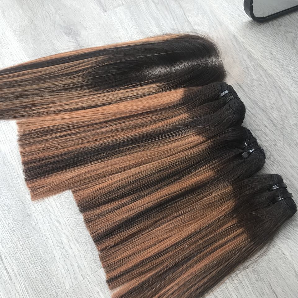 Juego de extensiones de cabello humano vietnamita, extensiones de cabello humano liso de hueso de color piano de 12 pulgadas, extensiones de cabello humano estirado de 30 pulgadas