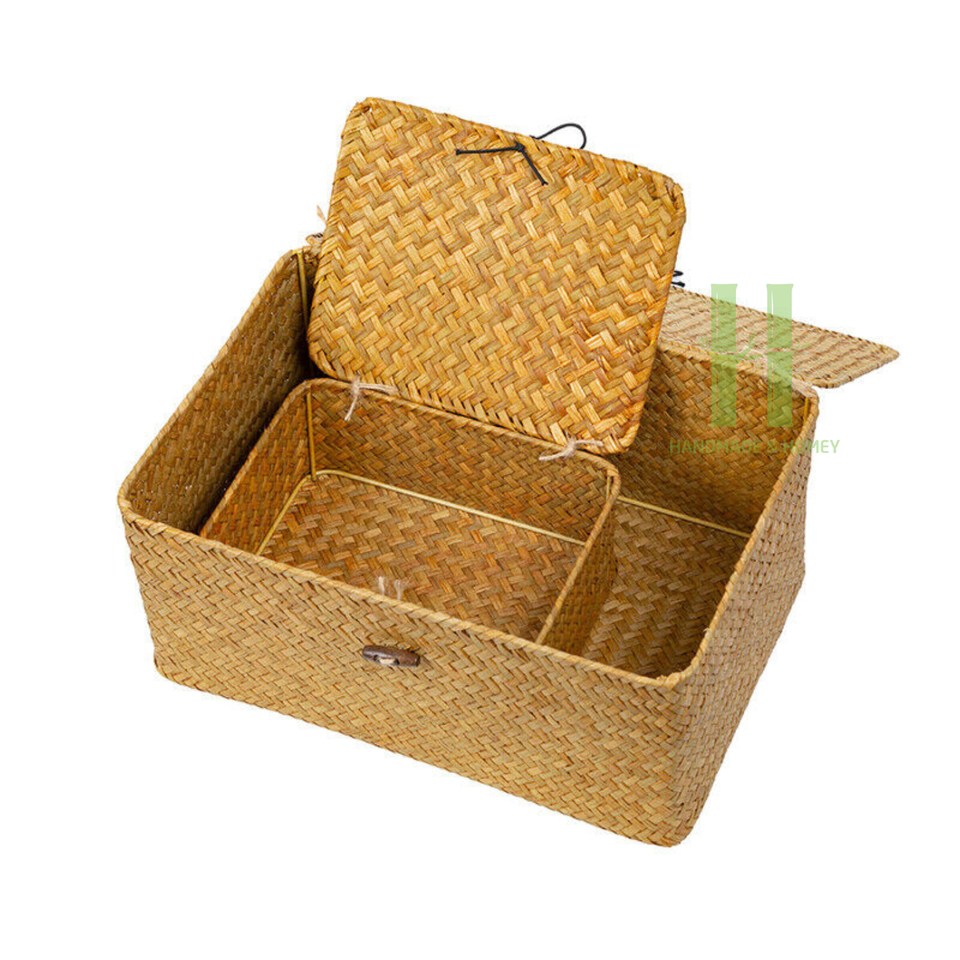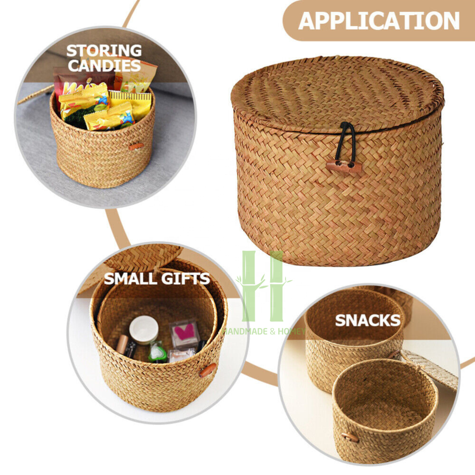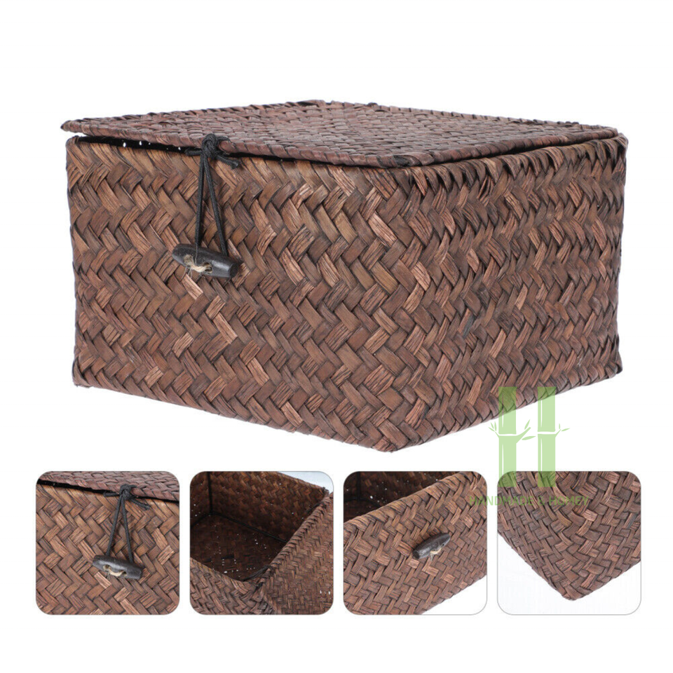 Juego de 2 contenedores rectangulares de alimentos para algas marinas, estilo bohemio ecológico, capacidad de 10-20L, organización del hogar, cestas de almacenamiento tejidas
