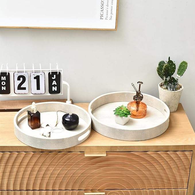 Juego de 2 Bandejas de Servicio Cuadradas de Shagreen, Ecológicas, de Madera de Marfil y Cuero PU, Decoración Moderna y Lujosa, Personalizable para Mesas de Centro