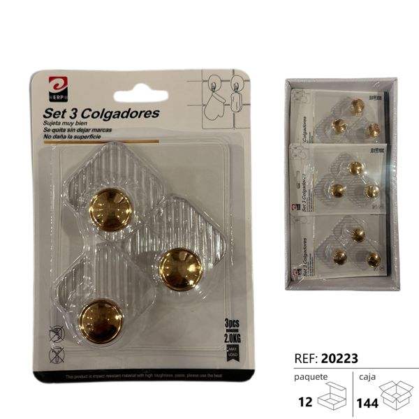 Juego de 3 Colgadores de Pared Transparentes en Forma de Diamante, Color Dorado, Capacidad de 2.0 kg