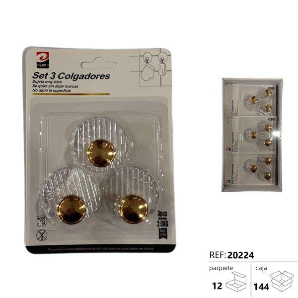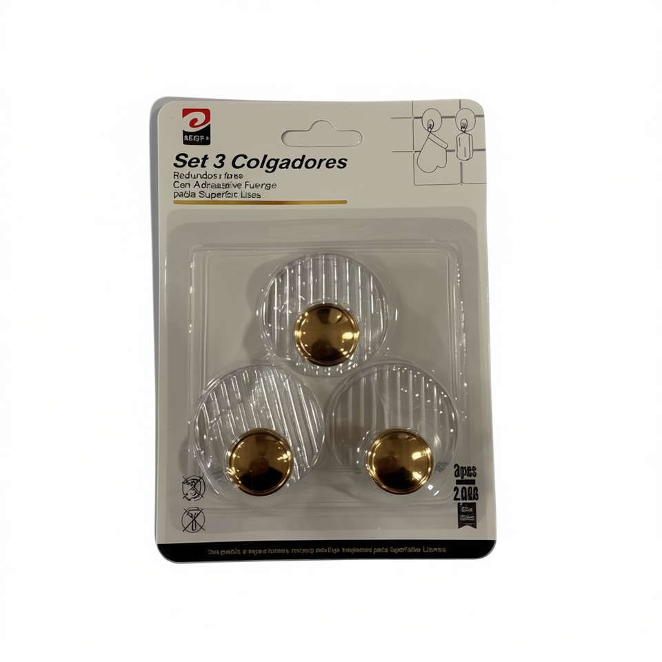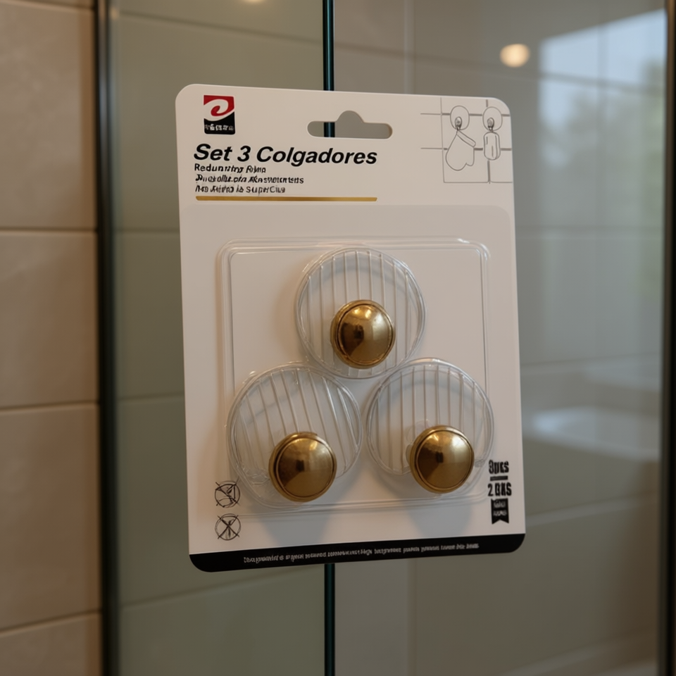 Juego de 3 Colgadores Redondos Transparentes con Adhesivo Fuerte para Superficies Lisas
