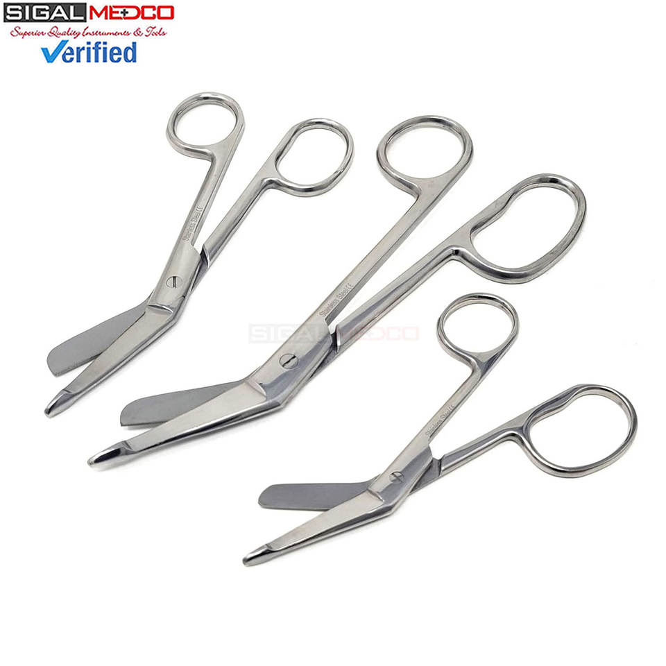 Juego de 3 Tijeras Lister para Vendajes, 3.5, 5.5 y 7.25 Pulgadas, de Acero Inoxidable, Manuales, para Trauma y Enfermería, con Certificación CE