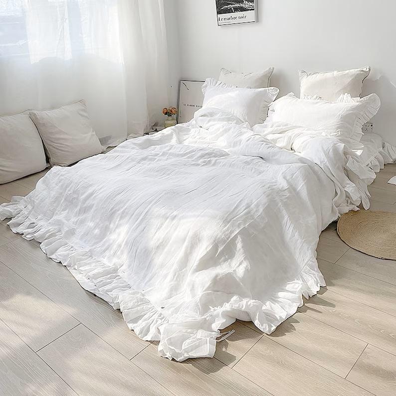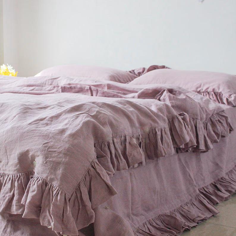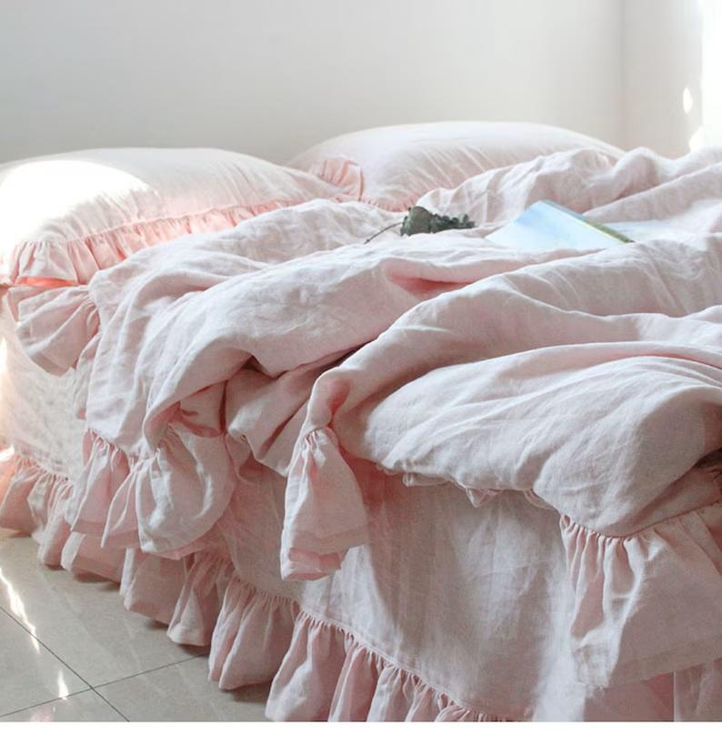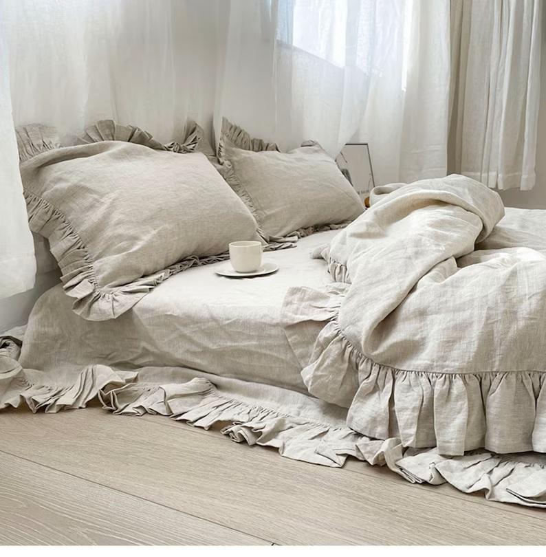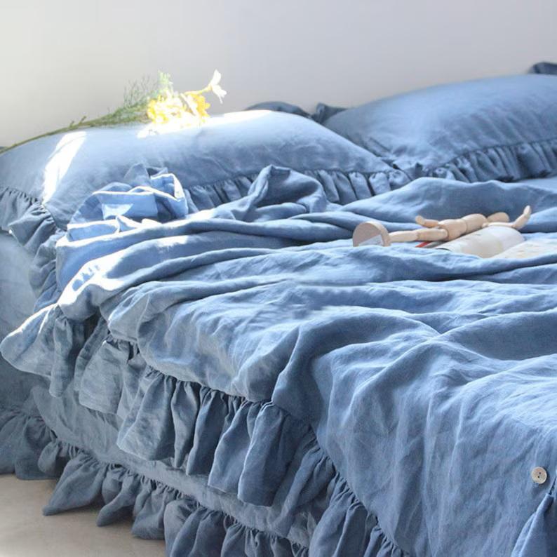 Linen Double Ruffle Bedding Set